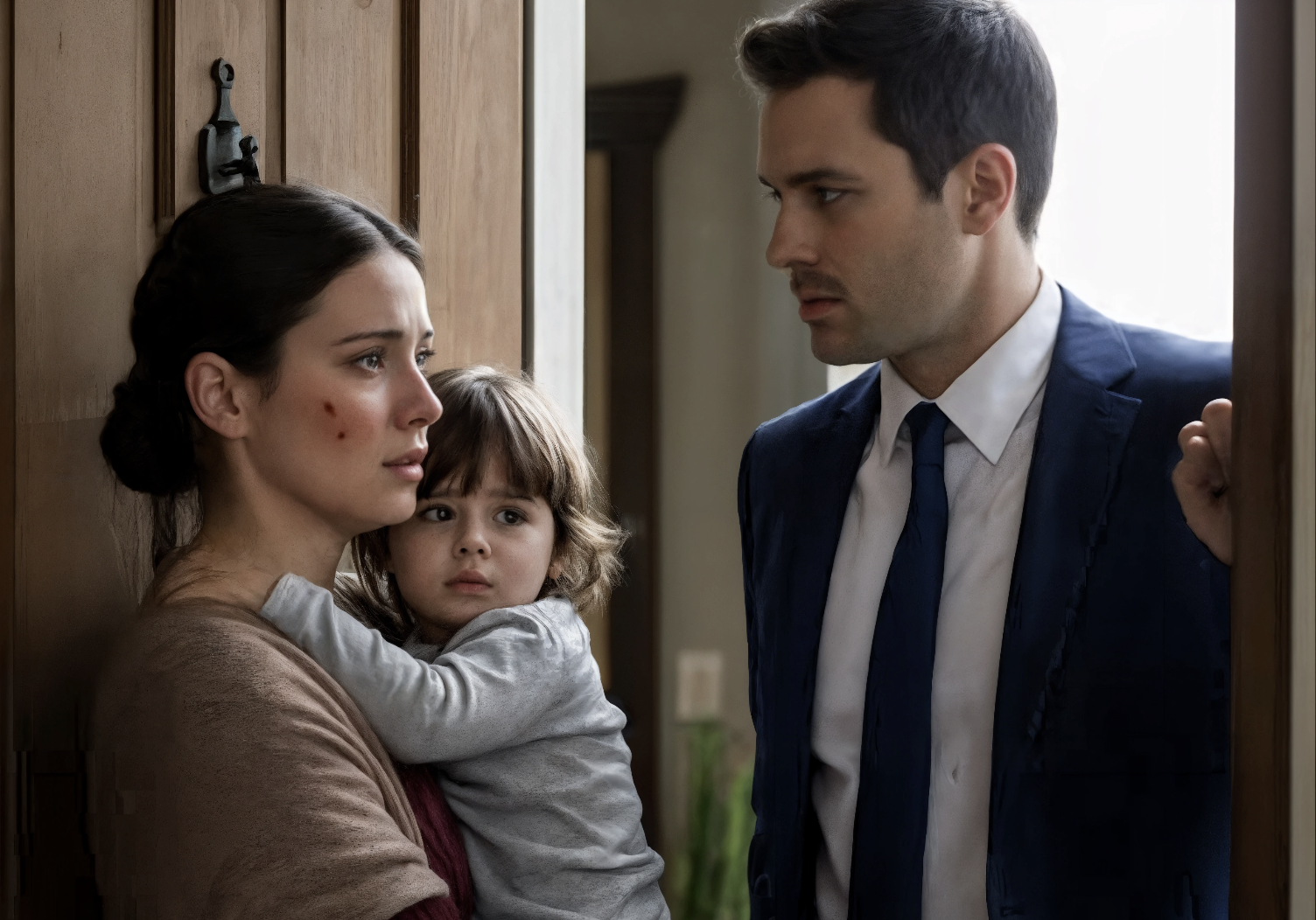 Sur le seuil se tenait une femme, ruisselante, serrant contre elle une fillette de deux ans à peine. Ses vêtements étaient fins et usés, ses yeux, vides et harassés. La petite s’agrippait à son pull, observant en silence.