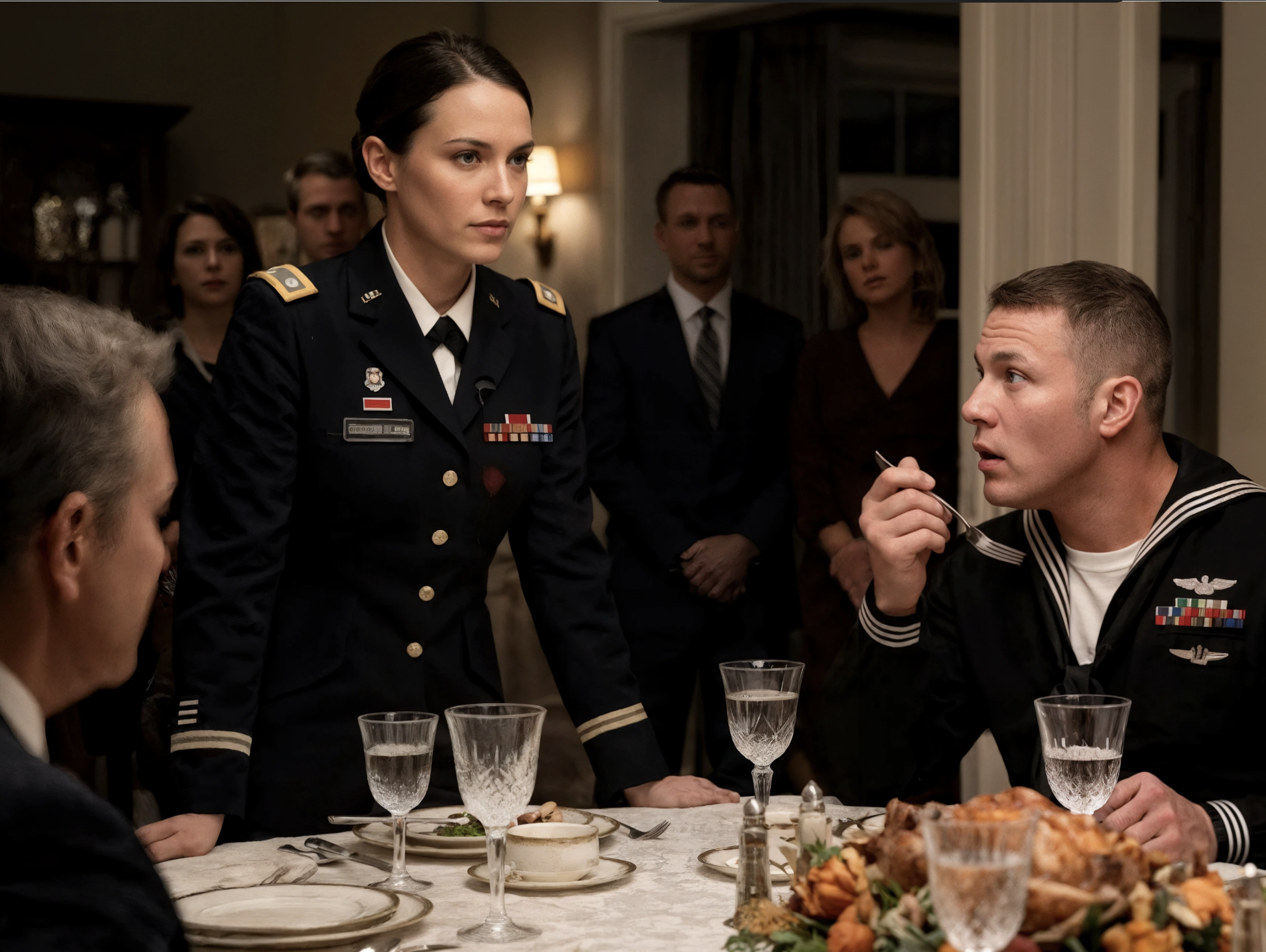 Mon cousin Nathan se tenait près de la cheminée, un verre de scotch rare à la main. Trente-cinq ans, grand, épaules larges, tout droit sorti d’une affiche de recrutement en tenue de cérémonie de la Navy. Les boutons dorés de sa veste accrochaient la lumière du lustre en cristal, étincelant d’une perfection polie que Marjorie vénérait clairement. Il semblait mal à l’aise, passant son poids d’une jambe à l’autre — mais aux yeux de sa mère, il n’était qu’une statue de grâce militaire.